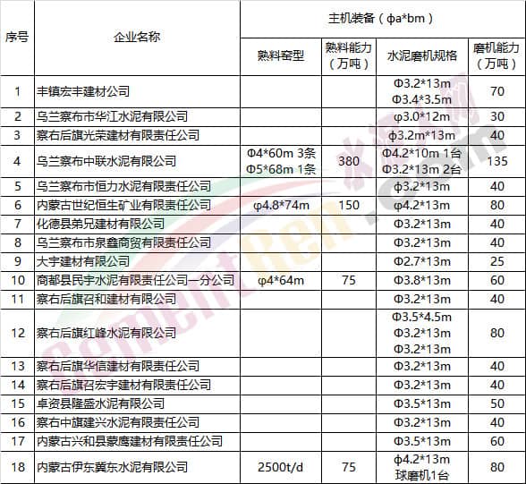 此前,內蒙古自治區政府公布的《內蒙古自治區水泥行業基本情況表》顯示,烏蘭察布市共有18家水泥企業,其中熟料生產線七條,熟料產能合計680萬噸。