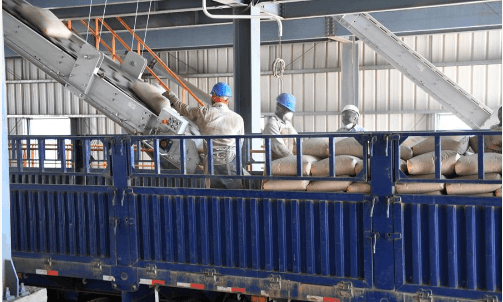 索科托水泥廠生產的水泥出庫。