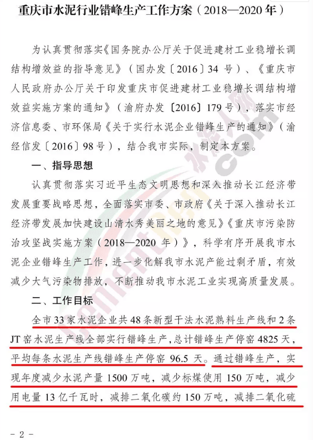 通過(guò)錯(cuò)峰生產(chǎn),實(shí)現(xiàn)年度減少水泥產(chǎn)量1500萬(wàn)噸,減少標(biāo)煤使用150萬(wàn)噸,減少用電量13億千瓦時(shí),減排二氧化碳約150萬(wàn)噸,減排二氧化硫約5萬(wàn)噸,減排氮氧化物約2萬(wàn)噸,減排粉塵約40萬(wàn)噸。