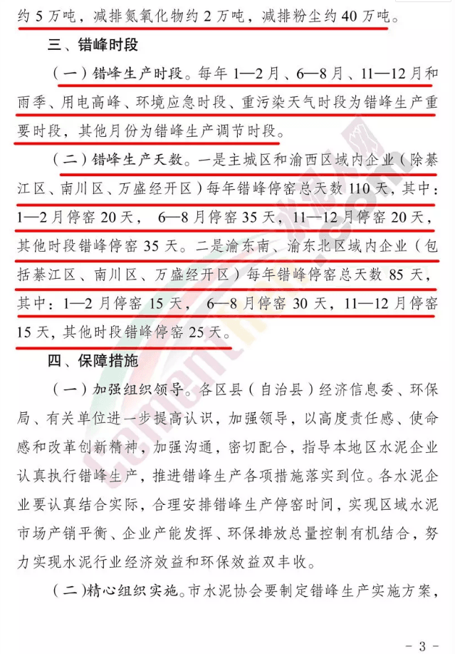 渝東南、渝東北區(qū)域內(nèi)企業(yè)(包括綦江區(qū)、南川區(qū)、萬(wàn)盛經(jīng)開(kāi)區(qū))每年錯(cuò)峰停窯總天數(shù)85天,其中: 1-2月停窯15天, 6-8月停窯30天,11-12月停窯15天,其他時(shí)段錯(cuò)峰停窯25天。