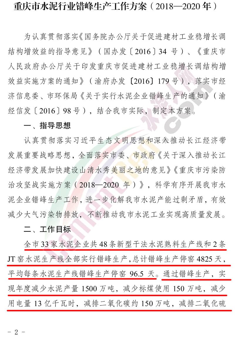 通過錯(cuò)峰生產(chǎn),實(shí)現(xiàn)年度減少水泥產(chǎn)量1500萬噸,減少標(biāo)煤使用150萬噸,減少用電量13億千瓦時(shí),減排二氧化碳約150萬噸,減排二氧化硫約5萬噸,減排氮氧化物約2萬噸,減排粉塵約40萬噸。