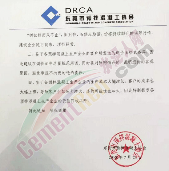 二、請各攪拌站確保混凝土質量,價格隨行就市,理性經營。