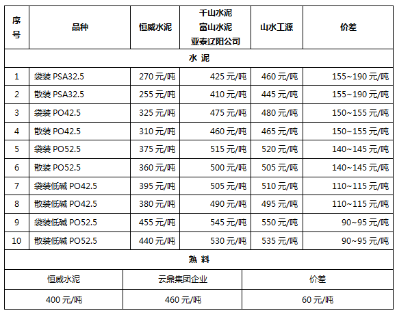 對(duì)比這家企業(yè)四月初發(fā)布的價(jià)格通知,部分標(biāo)號(hào)水泥產(chǎn)品價(jià)格有小幅上調(diào)。相關(guān)分析人士稱(chēng),近期,遼中地區(qū)價(jià)格較平穩(wěn),波動(dòng)不大,恒威水泥上調(diào)水泥價(jià)格或?yàn)槠胶夤┬琛?/p>