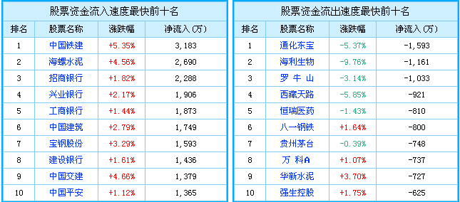 截至【9時55分】,股票五分鐘資金流速排名如下:
