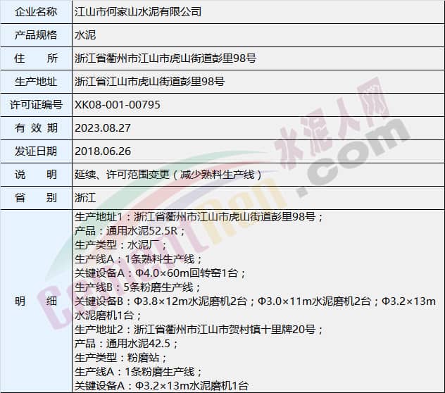 據水泥人網了解,1000t/d熟料產能出讓企業浙江衢州市何家山水泥有限公司共有兩條熟料生產線,規模分別為2500噸/日和1000噸/日。其中熟料1000t/d生產線在幾年前就已停產,今年6月份正式拆除退出。