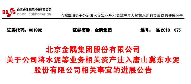 2018年7月26日,公司所持有的北京金隅水泥經(jīng)貿有限公司等10家公司的股權以及冀東水泥所持有的冀東水泥灤縣有限責任公司等20家公司的股權已全部過戶至合資公司,并完成相關工商變更登記手續(xù)。