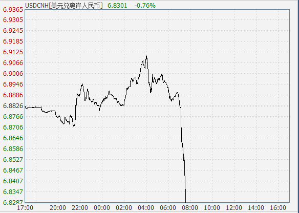 消息傳來(lái),全球外匯市場(chǎng)應(yīng)聲而動(dòng)。離岸人民幣兌美元短線暴漲超500點(diǎn),一度收復(fù)6.83關(guān)口,截至發(fā)稿報(bào)6.8373;在岸人民幣亦一度收復(fù)6.83關(guān)口,截至發(fā)稿,報(bào)6.8305。