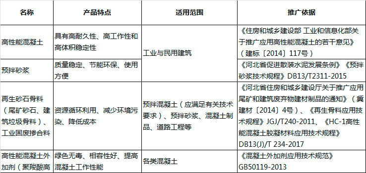 為方便查閱相關內容,此處僅列與部分與水泥、混凝土及砂石骨料相關內容。請點擊“閱讀原文”下載《河北省推廣、限制和禁止使用建設工程材料設備產品目錄(2018年版)》及河北省推廣、限制和禁止使用建設工程材料設備產品目錄(2018年版)編制說明全文。