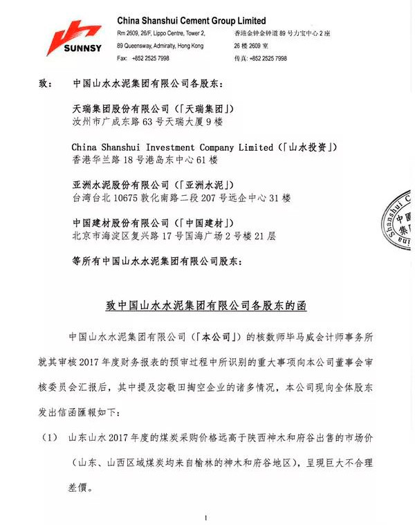 山水水泥(00691.HK) 2018年7月11日晚間發(fā)布公告,公司聘請的會計師事務(wù)所畢馬威表示,2018年1月29日及2018年2月7日,公司發(fā)布的《致股東的信函》的公告有多處失實之處。