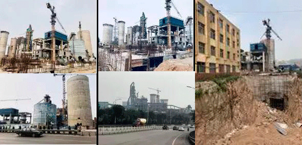 記者在施工現場看到,在一個很小的區域內建有兩條水泥熟料生產線,一條老的熟料生產線處于停產狀態,設備外表銹跡斑斑;緊挨著老線又新建一條生產線。施工現場看不到一個工人,塔吊也閑置在一旁。