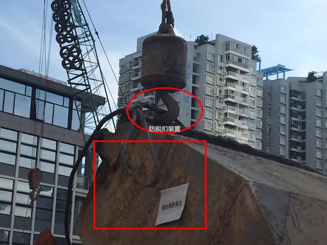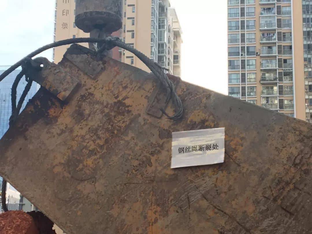 經現場勘查,掛吊鉤的鋼絲繩斷裂