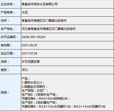 質檢總局生產許可證辦公室數據顯示,信合水泥建有兩條熟料生產線加兩條水泥粉磨生產線。熟料生產線關鍵設備為Φ4.0×60m回轉窯2臺。粉磨生產線關鍵設備為Φ3.8×13m水泥磨機1臺;Φ4.2×13m水泥磨機1臺。