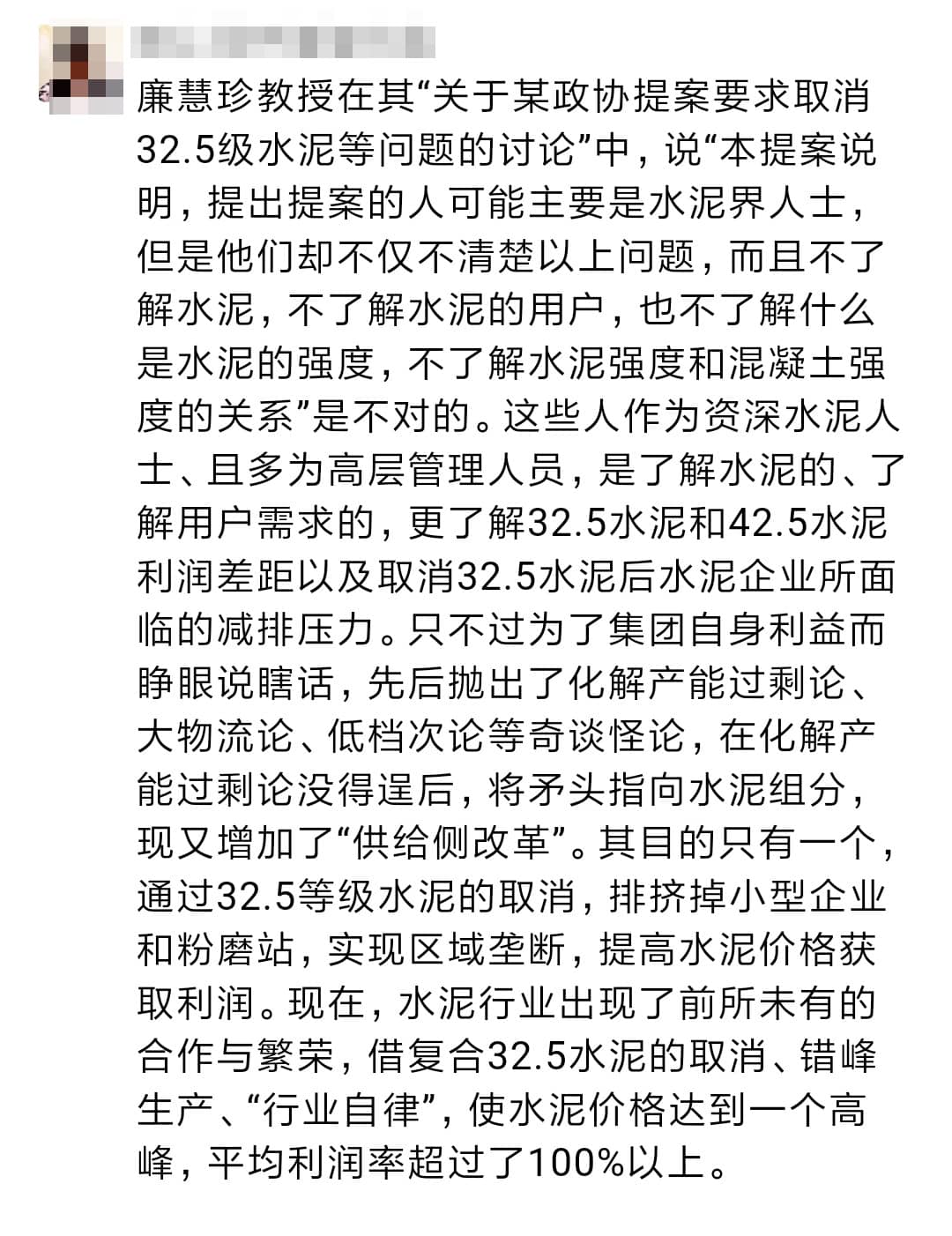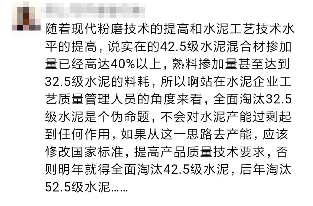 但是業內不少網友持反對態度的,甚至調侃如此這般,未來就是取消42.5級的水泥了,因為取消32.5級水泥已經不是從市場角度出發了,而是為了排擠掉小型企業與粉磨站,實現區域壟斷,提高水泥價格獲取更好的利潤。