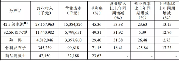 通過海螺水泥公布的上半年報(bào)可以看出,目前42.5級水泥和32.5R級水泥的毛利率分別在45.36%和49.31%,熟料的毛利率為29.40%。而骨料及石子的毛利率竟高達(dá)71.15%,而且相對于水泥以及熟料來看,砂石骨料產(chǎn)品的技術(shù)要求以及成本都相對較低,但是利潤空間非常可觀。