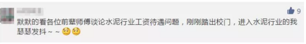 薪資問題永遠是一個熱門問話題,因水泥行業的薪資太低,普通員工薪資在1500~3000元/月不等。有網友留言“一個大男人一年往家拿兩萬多,都不如撿破爛的。”; “一線員工,忍著高溫、噪音、粉塵的危害實在不容易”;“這個確實是血汗錢,夏天熱死,冬天冷死”。水泥行業生產一線工人的苦累自不必多言。