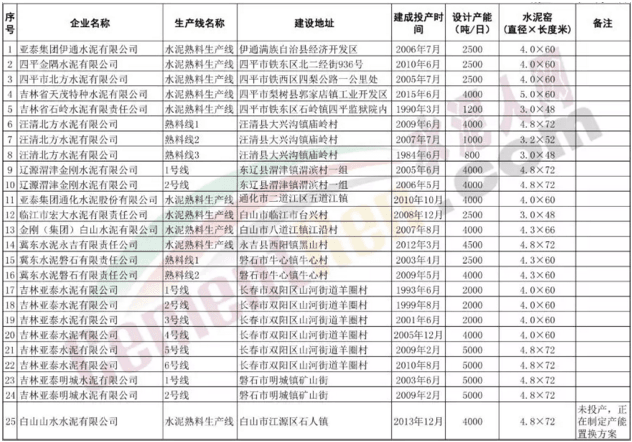 吉林省水泥熟料生產線清單