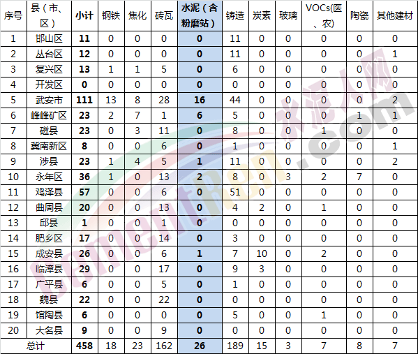 注:各縣(市、區)進一步核實本區域10個重點行業錯峰生產企業底數,未上報按漏報計,采暖季一律停產。