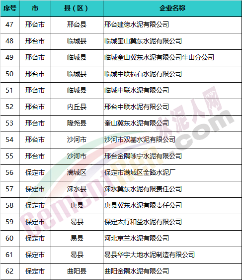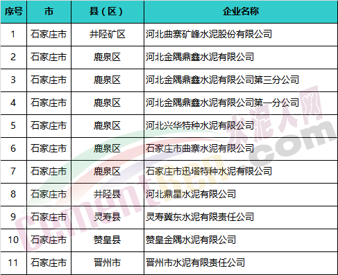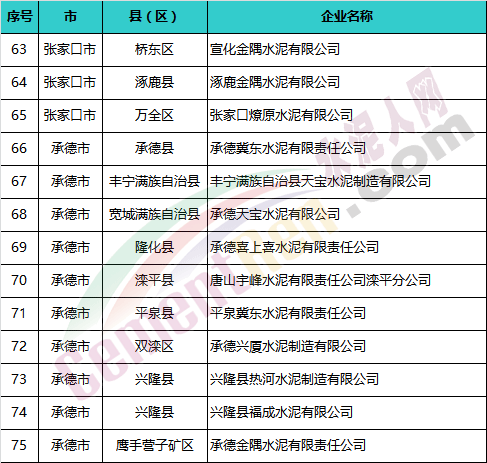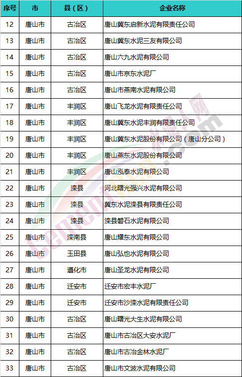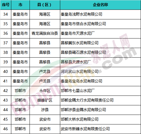 秦皇島市、邯鄲市重點排污水泥企業名錄