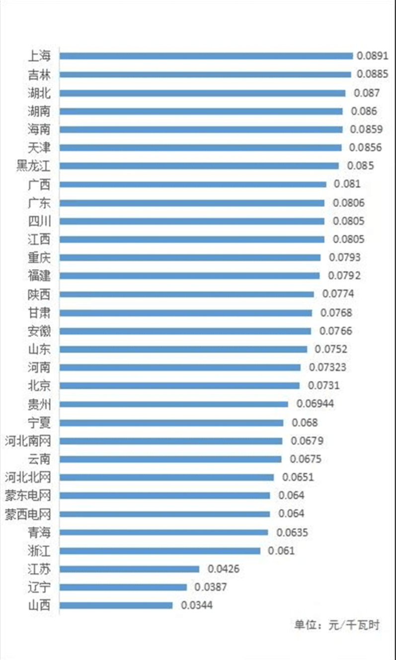 我國銷售電價按用電性質分為4大類,分別是居民、農業、大工業、一般工商業。一般工商業又分兩部分,一部分是商業用電,另一部分是小型工業用電,這些企業變壓器容量在315千伏安以下。商業企業和小型工業企業用電價格執行一般工商業電價。從各類電價水平來看,全國平均銷售電價水平是每千瓦時0.65元,其中居民電價每千瓦時0.55元,農業電價每千瓦時0.48元,大工業電價每千瓦時0.64元,一般工商業電價每千瓦時0.80元,一般工商業電價是這四類里面最高的。