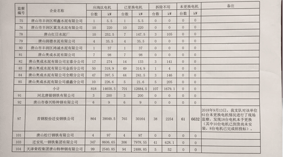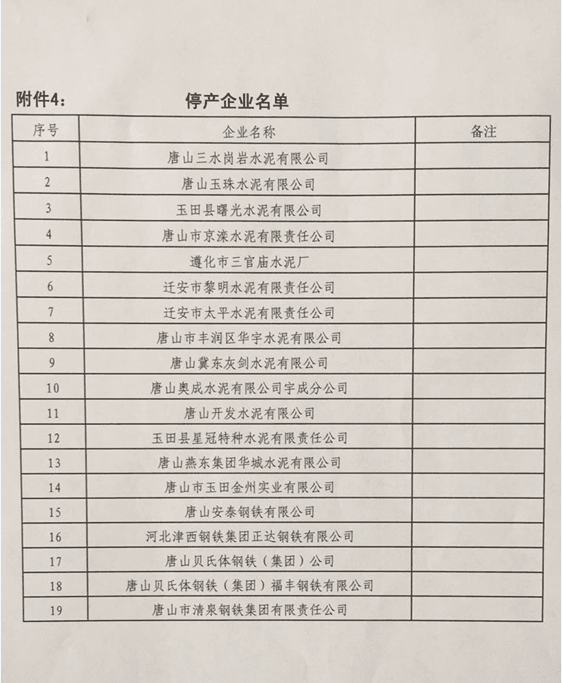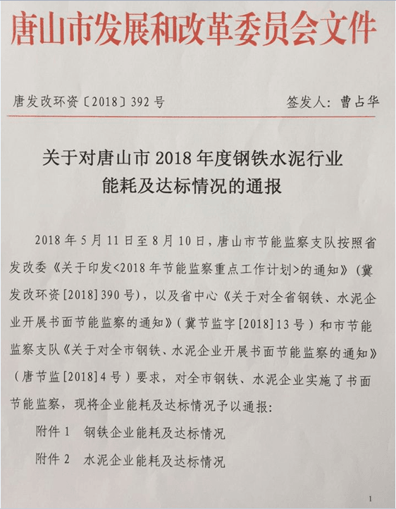 唐山市發改委發布《關于對唐山市2018年度鋼鐵水泥行業能耗及達標情況的通報》(下簡稱《通報》)。《通報》指出唐鋼集團、唐鋼不銹、首鋼遷鋼等37家鋼鐵企業白灰、焦化、燒結、球團、高爐、轉爐、電弧爐工序能耗全部達標,唐山市玉田金州實業、唐山安泰鋼鐵、唐山津西鋼鐵集團正達鋼鐵、唐山貝氏體鋼鐵(集團)公司、唐山貝氏體鋼鐵(集團)福豐鋼鐵、唐山市清泉鋼鐵集團6家鋼企停產。