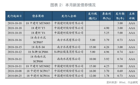 債市方面,跟蹤期內建材行業有10個主體發行新債,發行成功的債券共計7只,發行金額合計78億元。利差方面,本月建材行業的利差繼續表現出風險偏好走低的態勢,AAA等級債券信用利差下行2BP,而AA+等級債券信用利差大幅上行20BP,這與AA+及以下的企業以民企為主有關,在目前政府積極幫助民企融資的背景下,預計下月AA+利差會有所下行。