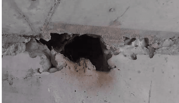 混凝土結構內部有尺寸較大的空隙,局部沒有混凝土或蜂窩特別大,鋼筋局部或全部裸露。