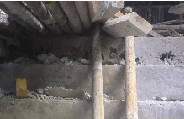 原因:工人不愿費力清運。造成后果:混凝土強度降低,檢測不合格。頂板底面大面積泛砂,影響頂板強度、及裝修是頂板出現裂縫。
