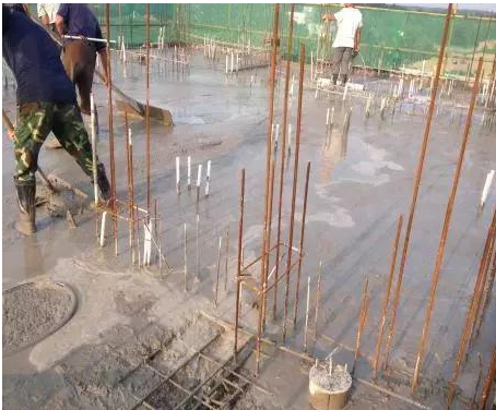 (7)基礎、柱、墻根部未稍加間歇就繼續灌上層混凝土。