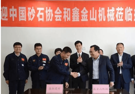 中國砂石協(xié)會會長胡幼奕,保定市發(fā)改局局長安同生,棗莊鑫金山智能機(jī)械股份有限公司董事長孫中巖、總經(jīng)理裴尚,源盛城發(fā)集團(tuán)董事長劉翠卿、總經(jīng)理高磊,源盛城發(fā)集團(tuán)保定盛拓建材加工有限公司總經(jīng)理魏增軍、副總經(jīng)理張雷、許亞兵、工程部經(jīng)理靳衛(wèi)東等參加簽約儀式。