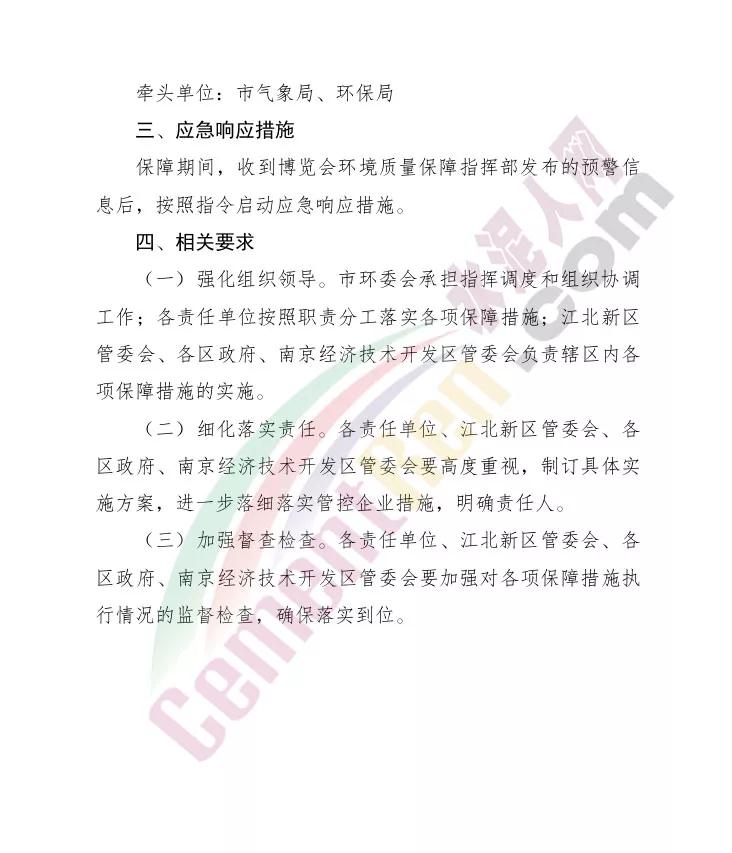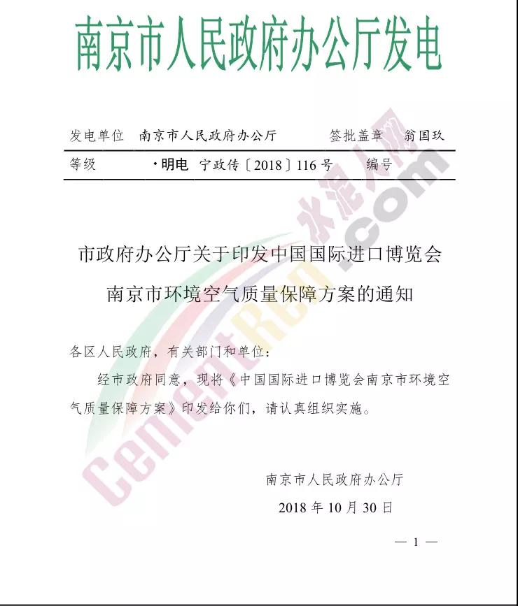 據水泥人網了解,10月30日南京市人民政府辦公廳發布《市政府辦公廳關于印發中國國際進口博覽會南京市環境空氣質量保障方案的通知》稱,為落實長三角區域大氣污染防治協作小組第七次工作會議精神,切實保障中國國際進口博覽會期間環境空氣質量,就南京市環境空氣質量保障特制訂管控方案。