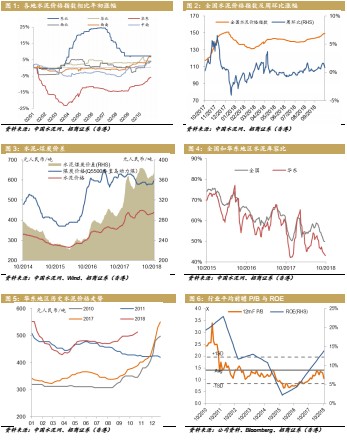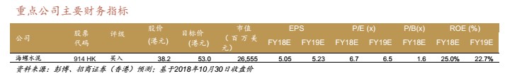今年全年水泥價格呈現(xiàn)出高位震蕩、季節(jié)性波動降低的特點,需求南方顯著好于北方,符合我們年初的判斷。近期由于市場對2019年需求預(yù)期調(diào)整,以及水泥板塊前期累計漲幅較高,板塊估值整體回調(diào),目前H股水泥行業(yè)平均估值7.1/1.1倍前瞻市盈率/市凈率,低于歷史平均。我們維持對水泥行業(yè)基本面的判斷,四季度推薦關(guān)注盈利確定性高、水泥價格穩(wěn)步推漲的海螺水泥(00914)