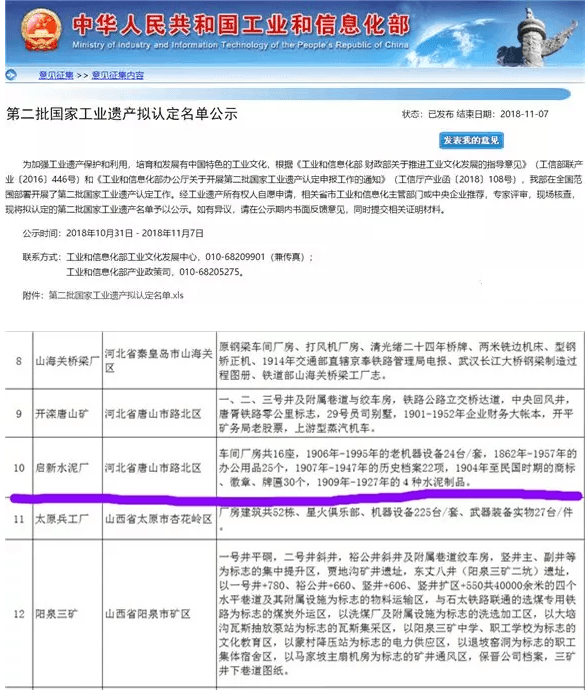近日,工信部為加強工業遺產保護和利用,培育和發展有中國特色的工業文化,在全國范圍部署開展了第二批國家工業遺產認定工作。水泥行業,啟新水泥廠成功入選了第二批國家工業遺產擬認定名單。公示時間為2018年10月31日至2018年11月7日。