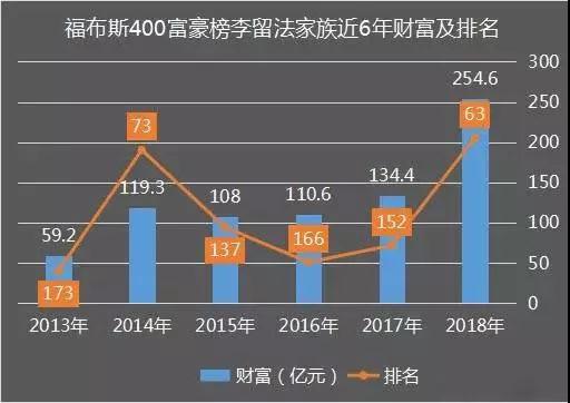 李留法家族自2013年入圍福布斯年度400富豪榜以來,每年都榜上有名,家族財富已經(jīng)從2013年首次上榜時的59.2億元增長了近200億元。