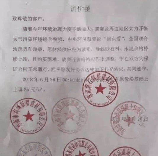 淮南,安徽省下轄地級市,位于安徽省中北部,地處長江三角洲腹地,淮河之濱,素有“中州咽喉,江南屏障”之稱,是沿淮城市群的重要節點,合肥都市圈核心城市。即使有這樣的優越地理條件,在中央環保監督下,全國聯合治理貨車超載中,當地砂石、水泥價格依然持續上漲,且購買困難,當地砼企為了避免惡性競爭,保證混凝土質量,所有混凝土在原價格基礎上上調35元/方。