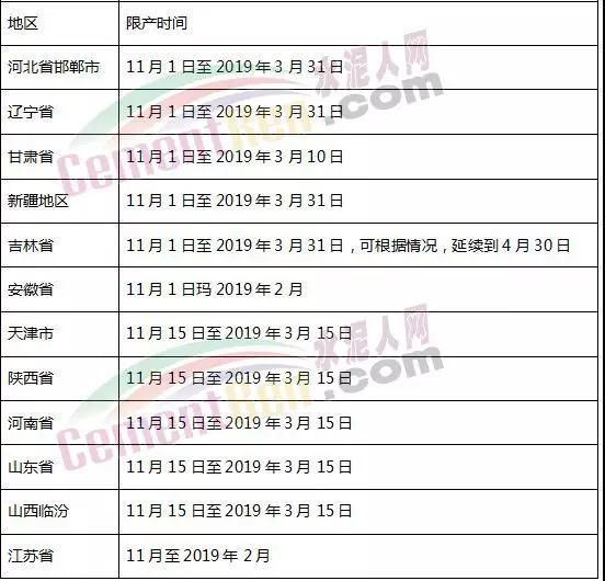 自11月1日起,河北、河南、山東、山西 、遼寧、吉林、陜西、甘肅、安徽、江蘇 、天津、新疆等幾十個地區近2000家水泥企業參與錯峰停限產。