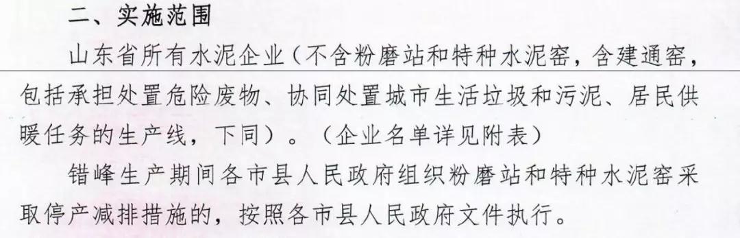 山東省的錯峰生產方案針對于前兩年錯峰生產中的“特權政策”做了專門的解讀,方案中明確水泥窯協同處置固廢、危廢及居民供暖等在采暖季結束后均要補齊相應停窯時間。