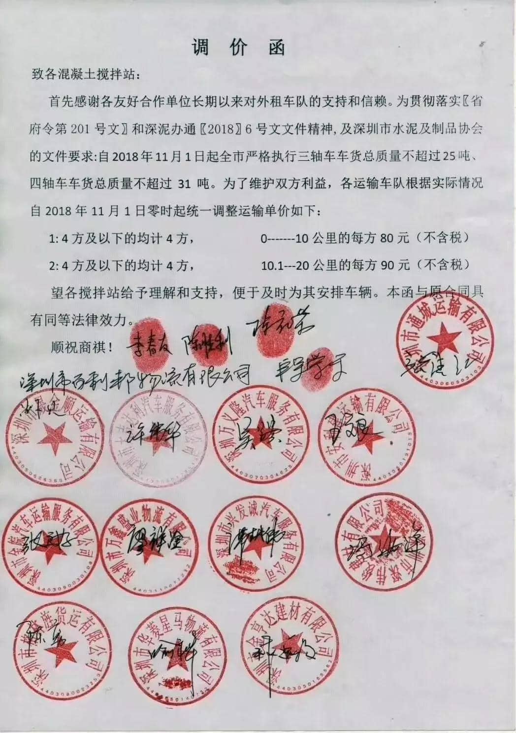同期深圳市多家商砼攪拌站聯合發布文稱:為貫徹落實【省府令第201號文】和深泥辦通【2018】6號文文件精神,及深圳市水泥及制品協會文件要求。自2018年11月日起深圳市嚴格執行:三軸車車貨總質量不超過25噸,四軸車車貨總質量不超過31噸。