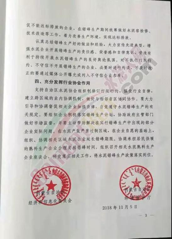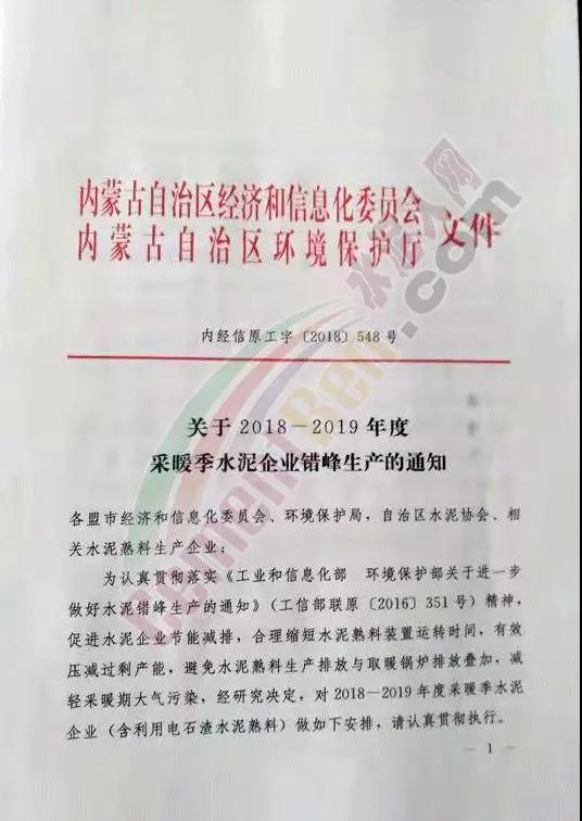 《關于2018-2019年度采暖季水泥企業錯峰生產的通知》全文如下: