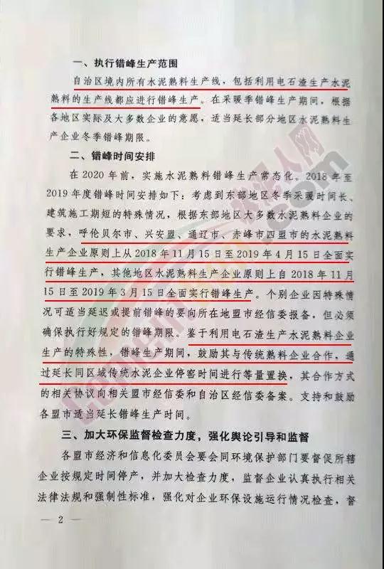 執行錯峰生產生產范圍:內蒙古自治區境內所有水泥熟料生產線,包括利用電石渣生產水泥熟料的生產線;