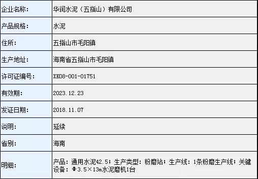 生產許可證變更中涉及多家水泥集團企業子公司,五家海螺水泥公司:安徽海螺水泥股份有限公司、樂清海螺水泥有限責任公司、乾縣海螺水泥有限責任公司;一家華潤水泥工廠華潤水泥(封開)有限公司;一家華新水泥工廠華新水泥(武穴)有限公司;一家金隅冀東工廠廣宗縣金隅冀東水泥有限公司;一家祁連山水泥甘谷祁連山水泥有限公司等。