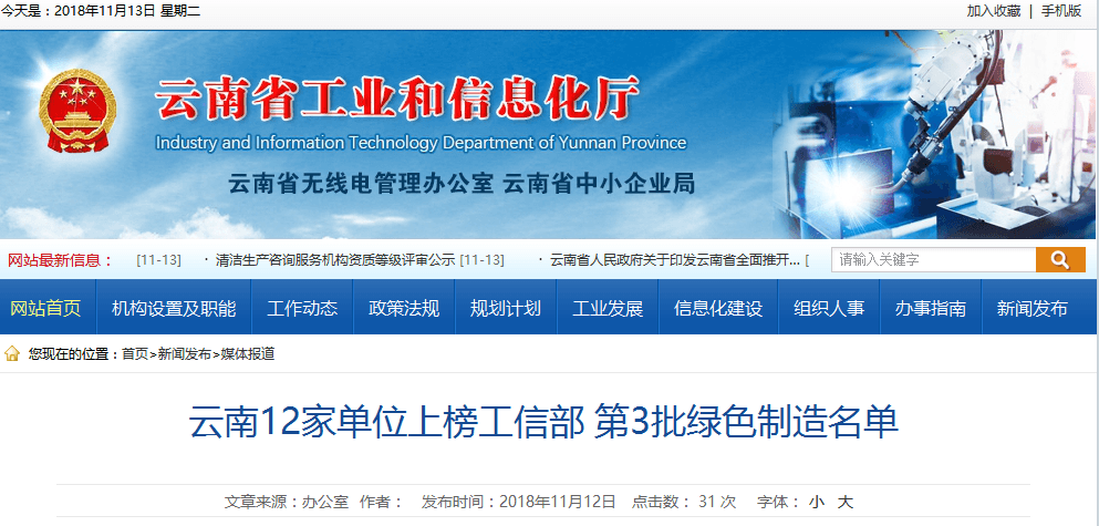 工信部第3批綠色制造名單中,我省有10家單位入選綠色工廠,分別為:耿馬南華勐永糖業有限公司、滄源南華勐省糖業有限公司、云南嶺東印刷包裝有限公司、云南玉溪水松紙廠、楚雄市華麗包裝實業有限責任公司、云南九九彩印有限公司、云南創新新材料有限公司、貴研資源(易門)有限公司、云南鈦業股份有限公司、文山海螺水泥有限責任公司。
