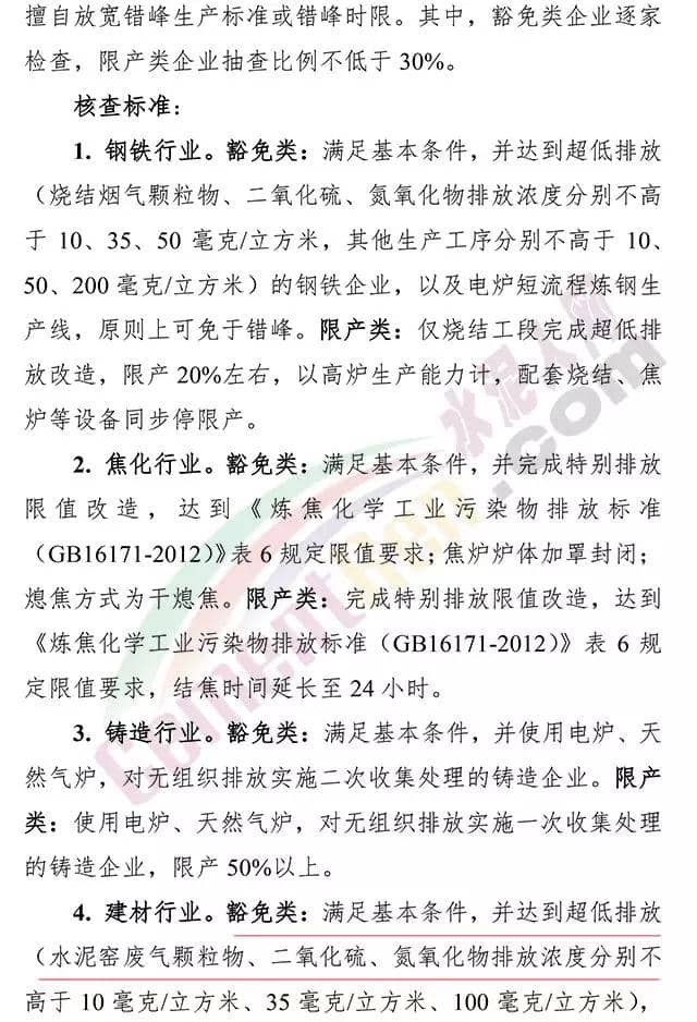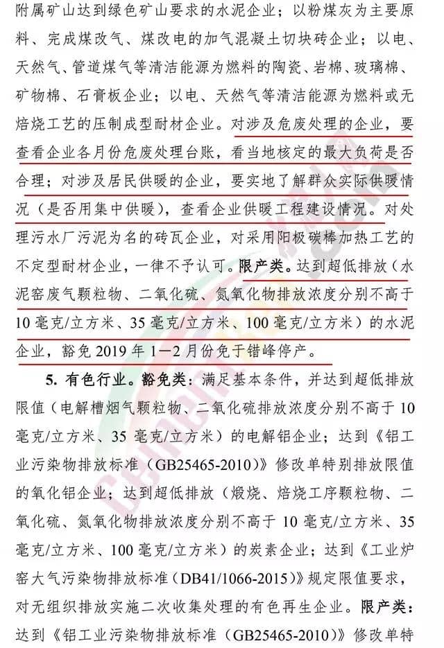 限產類,達到超低排放(水泥窯廢氣顆粒物、二氧化碳、氮氧化物排放濃度分別不高于10毫克/立方米、35毫克/立方米、100毫克/立方米)的水泥企業,豁免2019年1-2月份免于錯峰停產。《方案》全文如下: