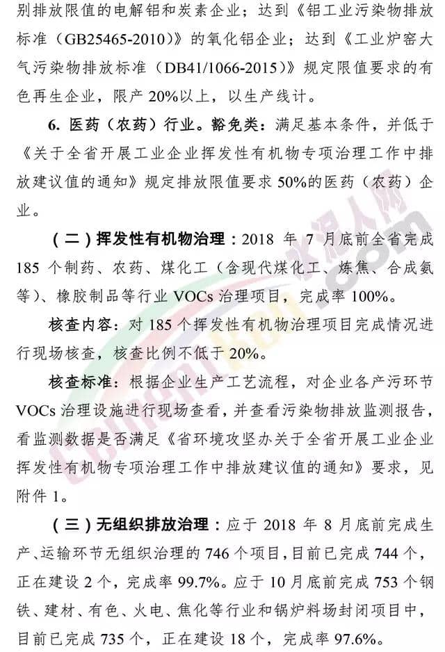 調研內容包括錯峰生產豁免類和限產類企業的調研。依據《河南省重點行業差異化錯峰生產指導意見》規定的豁免和限產標準,對各地建材、鋼鐵、焦化等行業豁免類和限產類企業,逐條對照核查,嚴格把關,嚴禁擅自放寬錯峰生產標準或錯峰時限。其中豁免類企業逐家檢查,限產類企業抽查比例不低于30%。