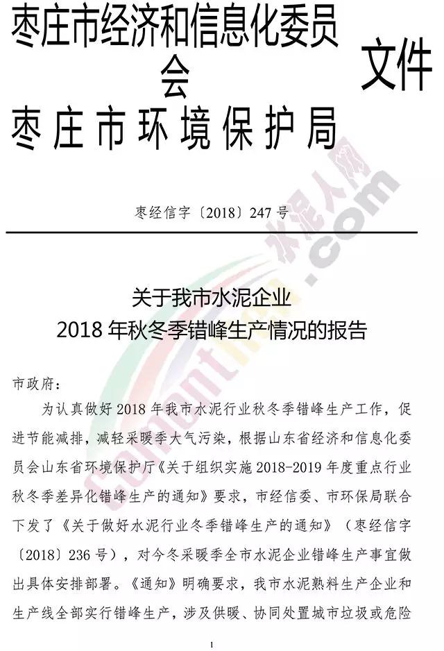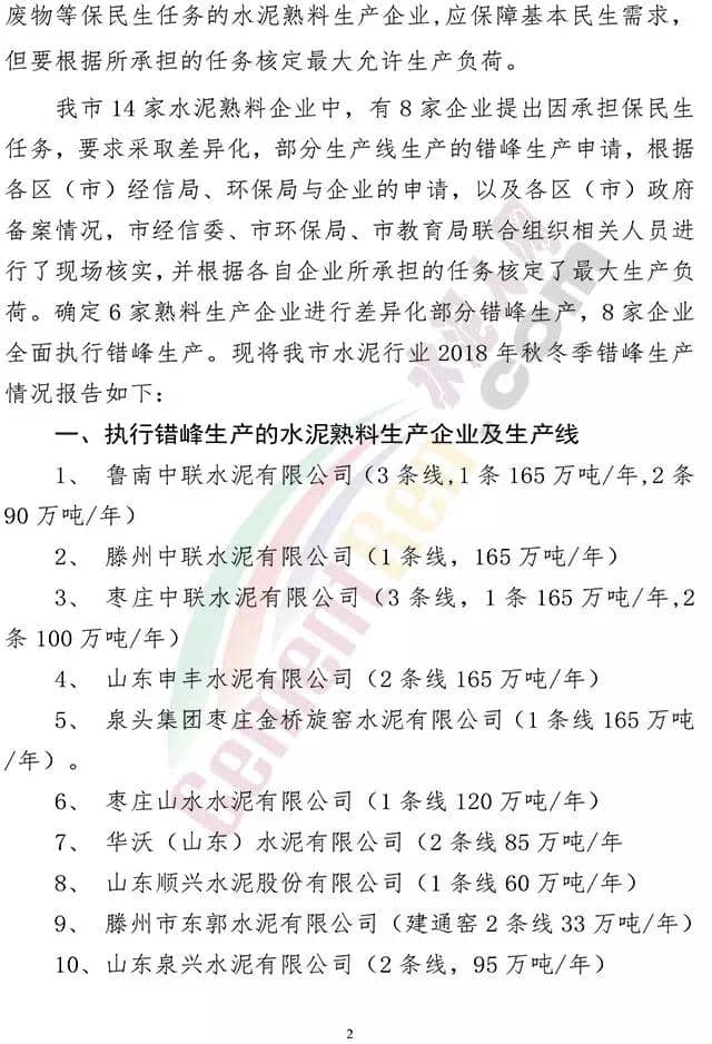 棗莊市水泥行業2018年秋冬季錯峰生產情況