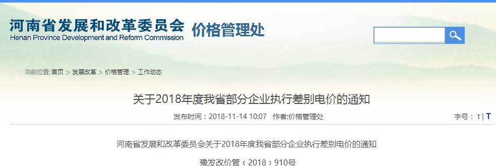 根據(jù)中央環(huán)境保護(hù)督察“回頭看”及大氣污染問題專項(xiàng)督察反饋意見和省政府辦公廳《關(guān)于完善差別化電價(jià)政策的通知》(豫政辦明電〔2018〕99號)、我省整改方案等要求,經(jīng)我委組織專項(xiàng)核查,現(xiàn)就我省部分企業(yè)執(zhí)行差別化電價(jià)情況通知如下: