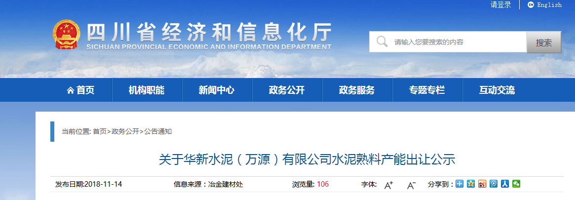 按照《國務院關于化解產能嚴重過剩矛盾的指導意見》(國發〔2013〕41號)、《國務院辦公廳關于促進建材工業穩增長調結構增效益的指導意見》(國辦發〔2016〕34號)、《工業和信息化部關于印發鋼鐵水泥玻璃行業產能置換實施辦法的通知》(工信部產業〔2017〕337號)精神,現將華新水泥(萬源)有限公司水泥熟料產能異地置換情況進行公示,歡迎社會公眾進行監督。公示期為2018年11月14日至11月18日,公示期5天。如有異議,請于公示期內向我廳冶金建材處反饋。