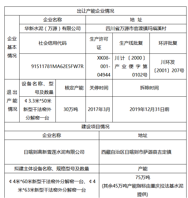 華新水泥(萬源)有限公司水泥熟料產能置換方案