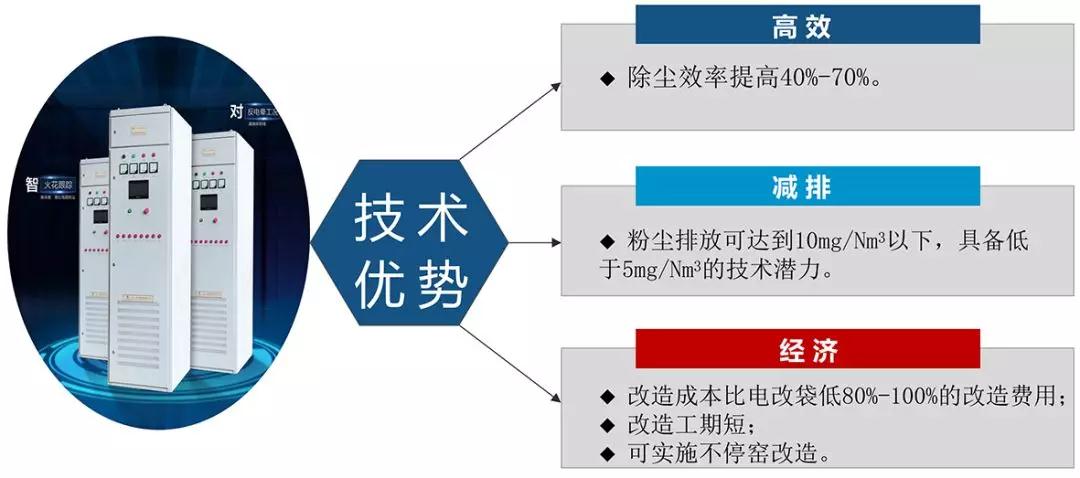 ▲ 精準火花頻率,使電場保持在最佳火花率運行,提高除塵效率