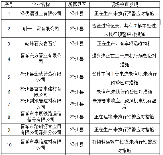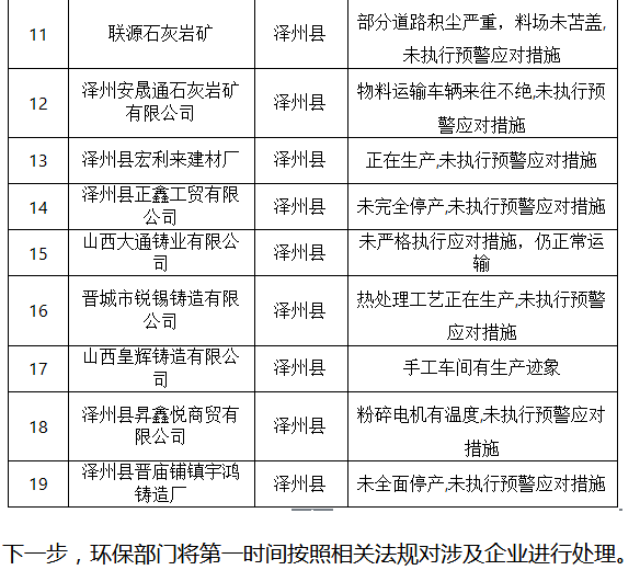 重污染天氣期間 晉城19家企業不限產停產被點名通報!