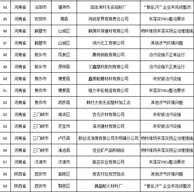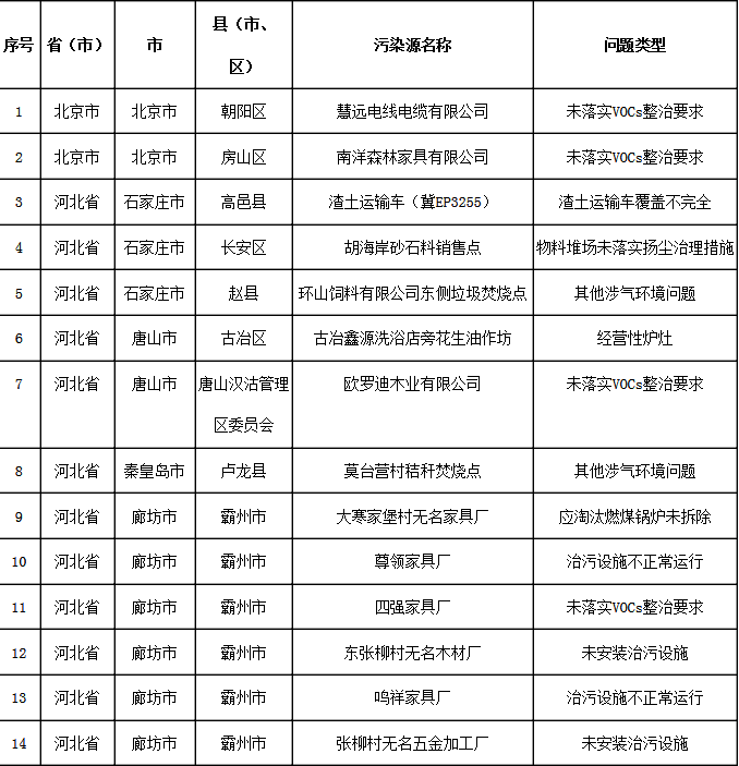 11月17日強(qiáng)化監(jiān)督發(fā)現(xiàn)涉氣環(huán)境問題匯總表